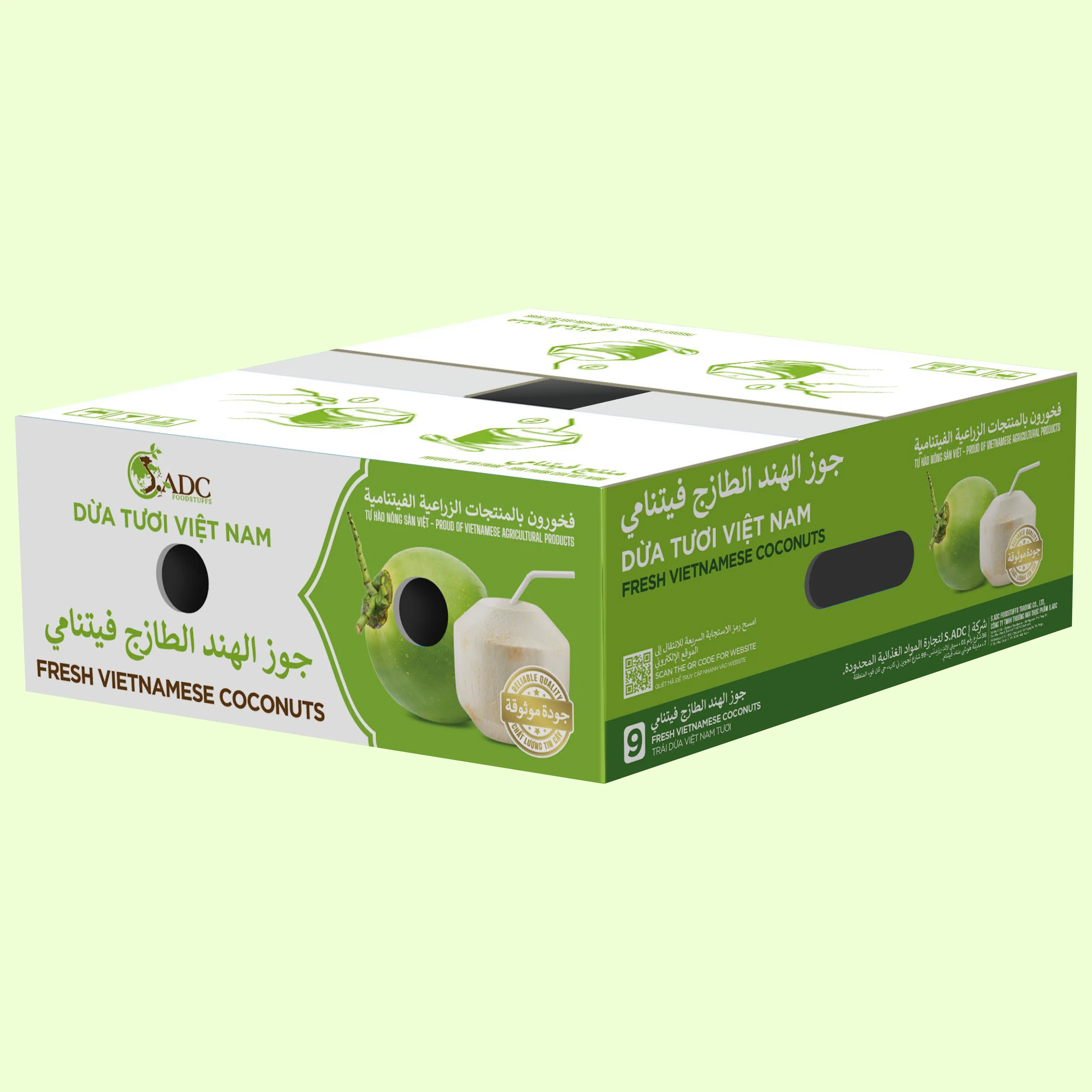 Fresh Vietnamese Coconut is globally recognized for its high water content, natural sweetness, and nutritional benefits. The coconuts are medium to large in size, with a thin, smooth green shell when young and a fibrous brown husk when mature. The water inside is rich in electrolytes, making it a natural hydration source, while the flesh is tender and aromatic, suitable for direct consumption or processing into coconut milk, oil, and other food products.